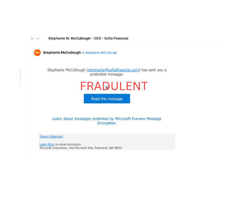 • Do not click on any links or download attachments from suspicious emails claiming to be from us.